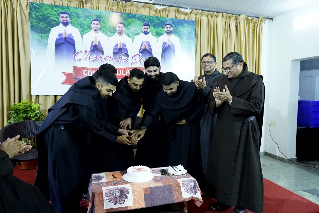 the sacred order on the five candidates, reminding them of their new