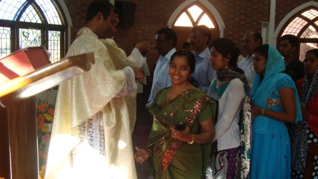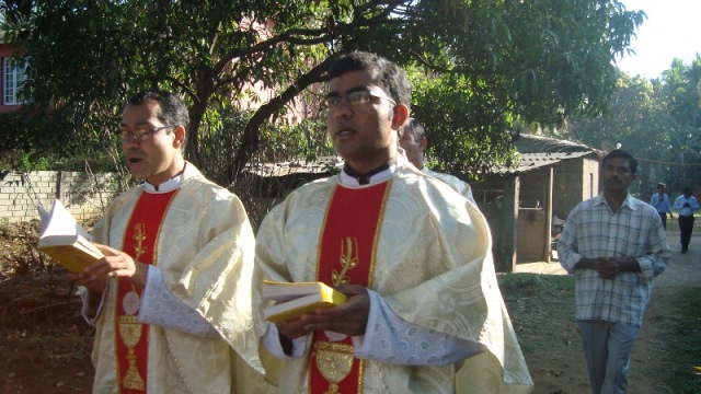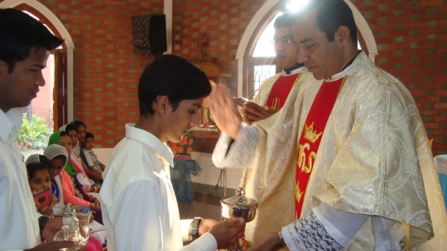 Eucharist, presided over by the prior Fr.