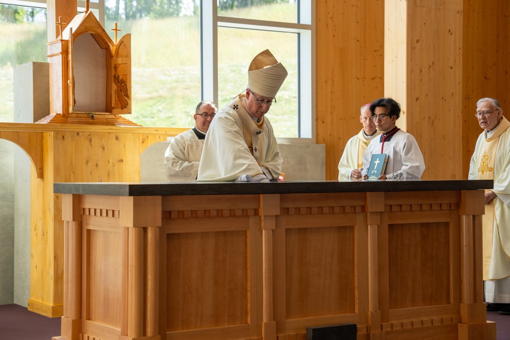 Holy Oil on the altar and consecrated it. There