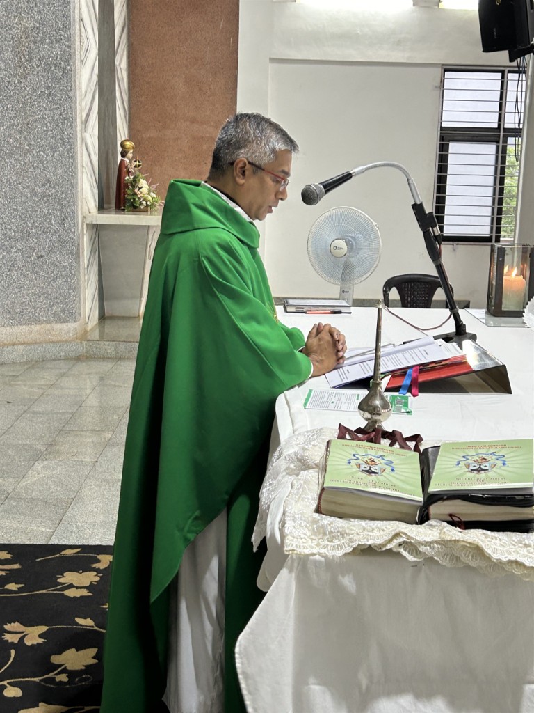 the 8:15 am Mass at the Carmelite Seminary in Mapusa, Goa. The