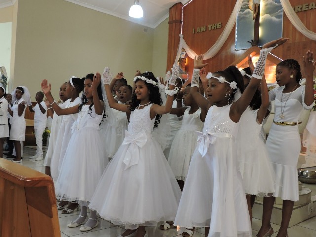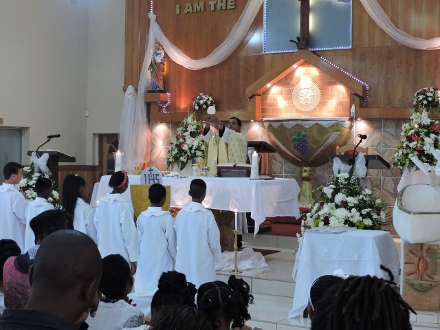 First Holy Communion in St. Joseph's Church, Actonville - South Africa. 34 children received Holy Communion. Teachers were honored at the end of the Mass.